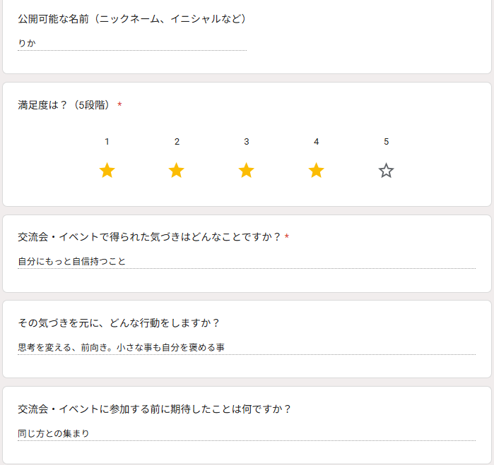 少し深めの自己紹介ができましたよ。
