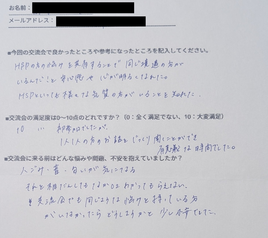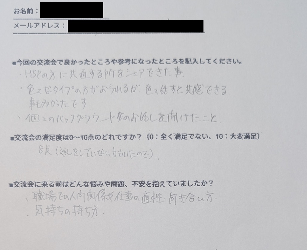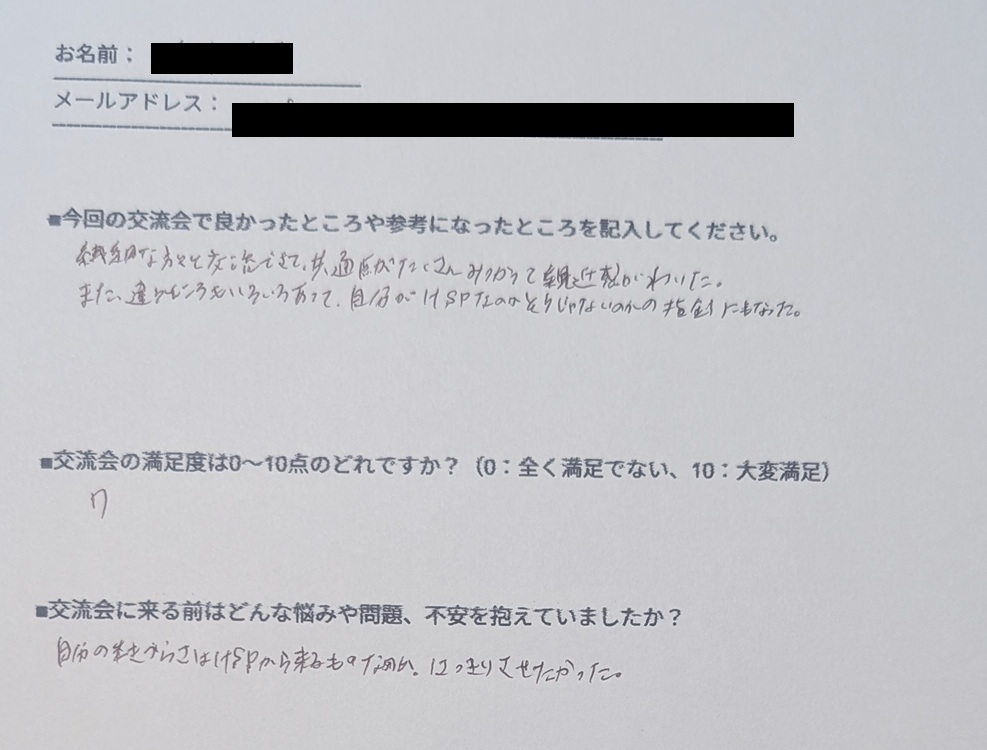 「繊細さんが周りにいないので、勇気出して参加してよかった」