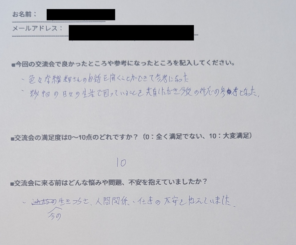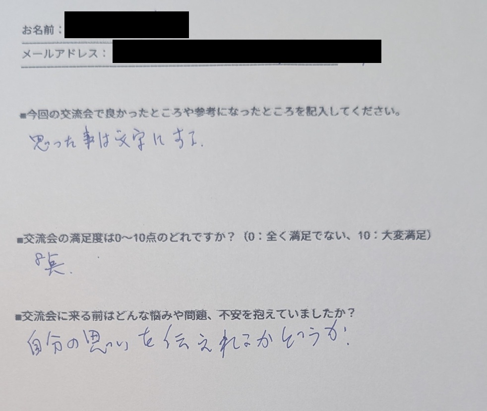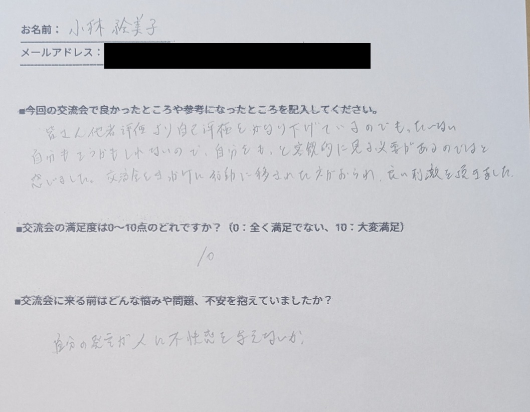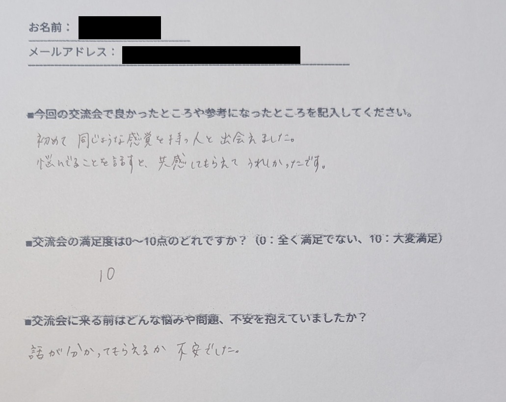 「この場がとても居心地が良く、前向きになれました」