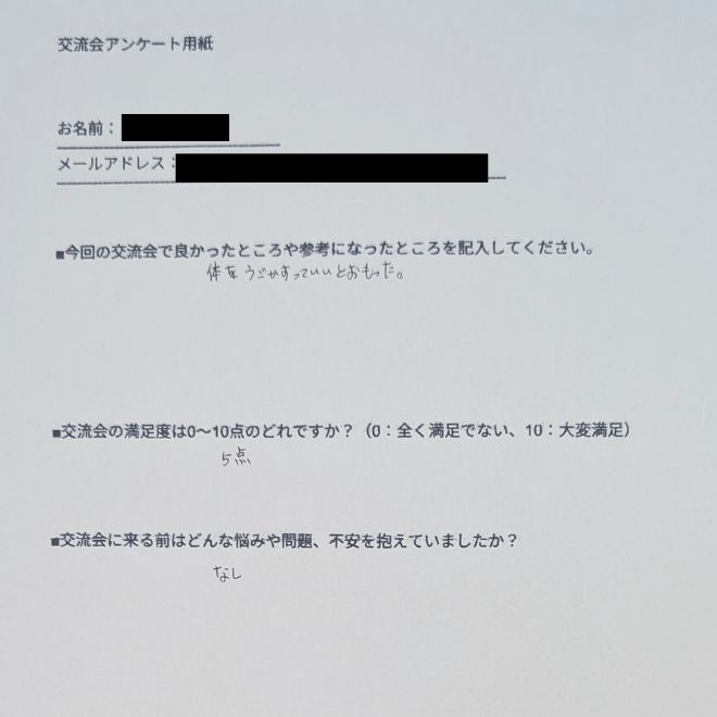 お住まいや、現在やっていることなどを共有し