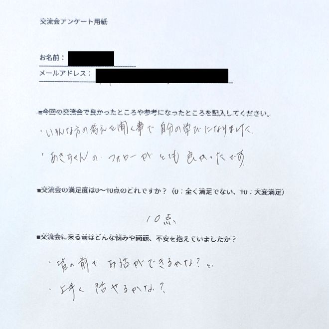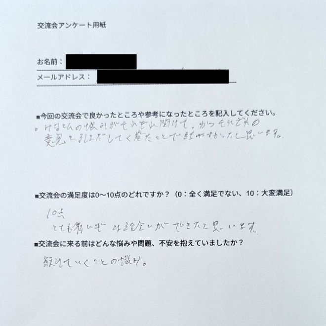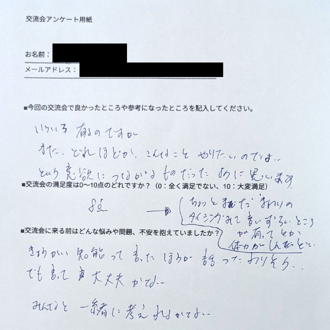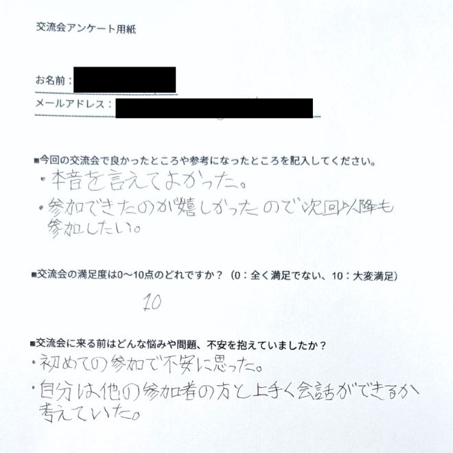 「人とちゃんと話せるか不安だったけど、来てよかった」と。