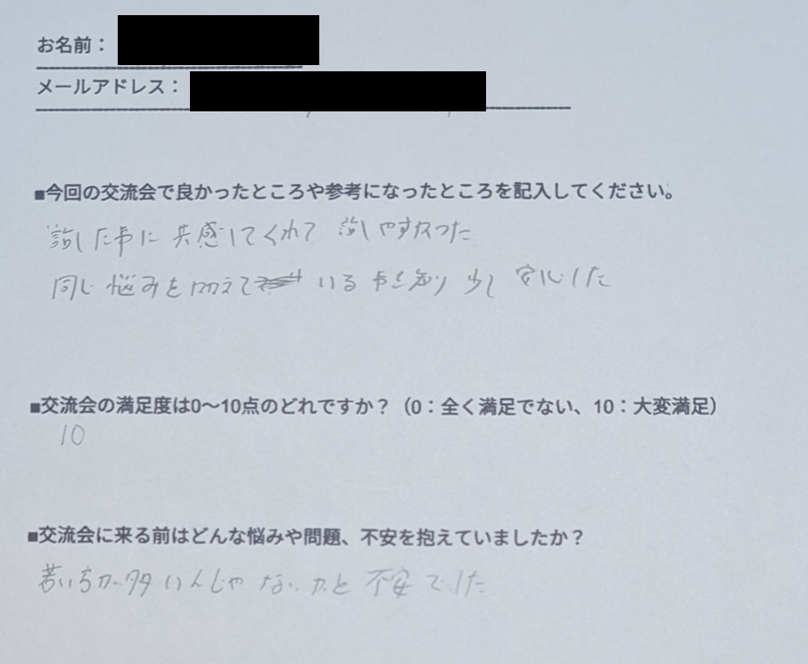 「私もです」と、共感の場となりました。