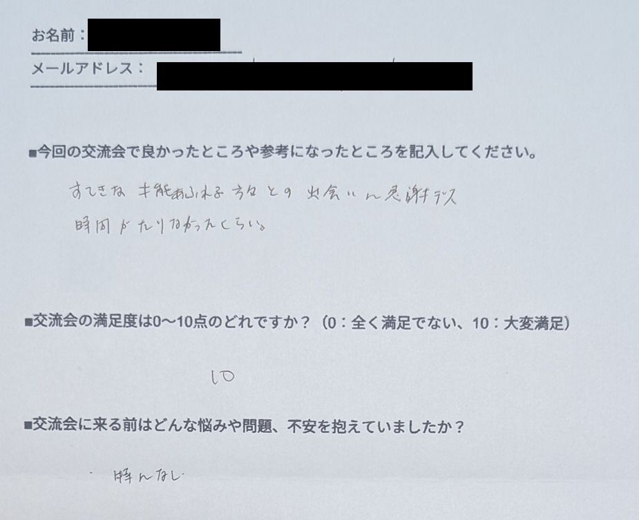 交流会の感想シェア!