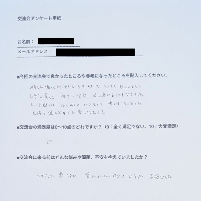 最後に、本日の登山、ハーブ園の感想をシェアいただきました。