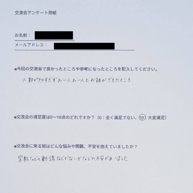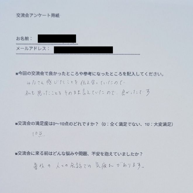 「同じ感性の仲間と過ごせて、楽な気持ちで過ごせた」