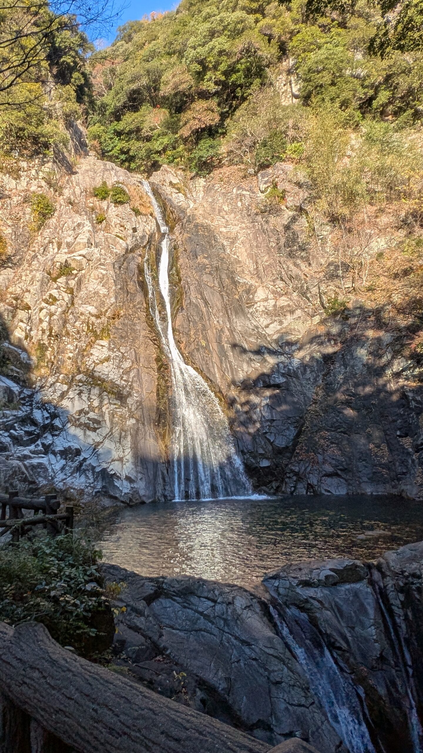 どんどん登っていくと、夫婦滝と雄滝が現れます。