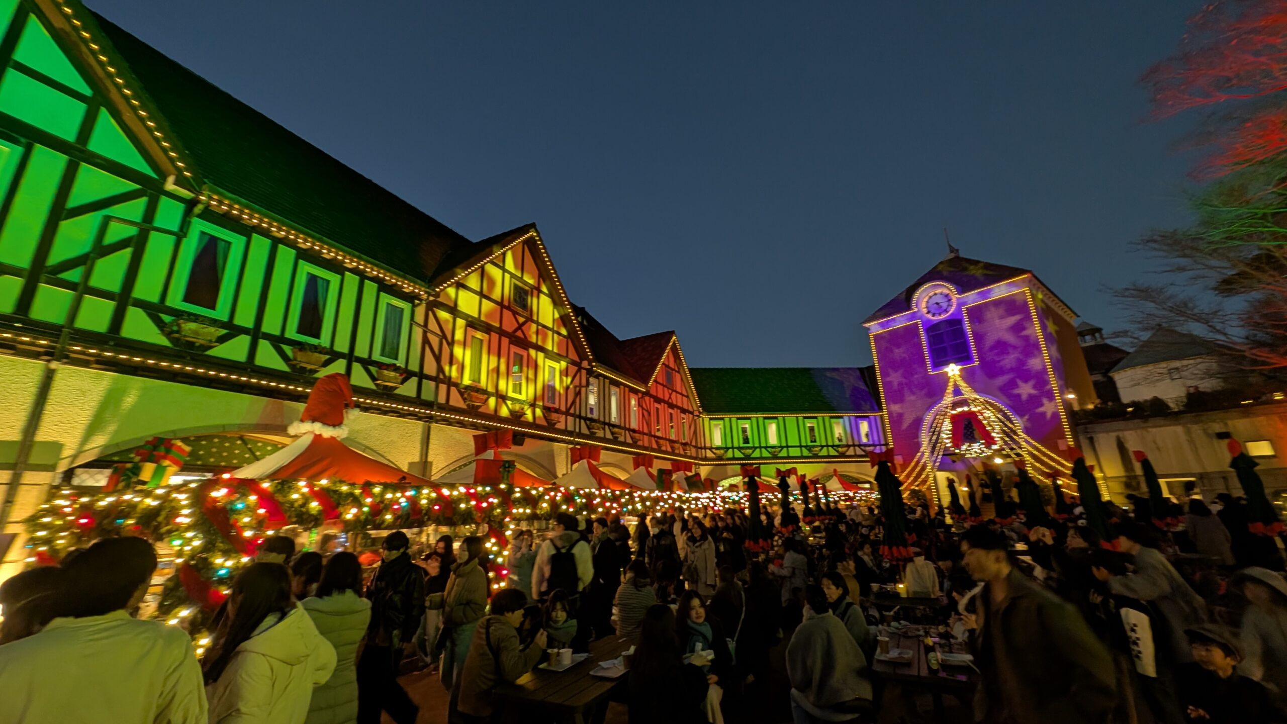 夜のハーブ園はクリスマスシーズンでドイツ屋台イベントで盛り上がっていました。