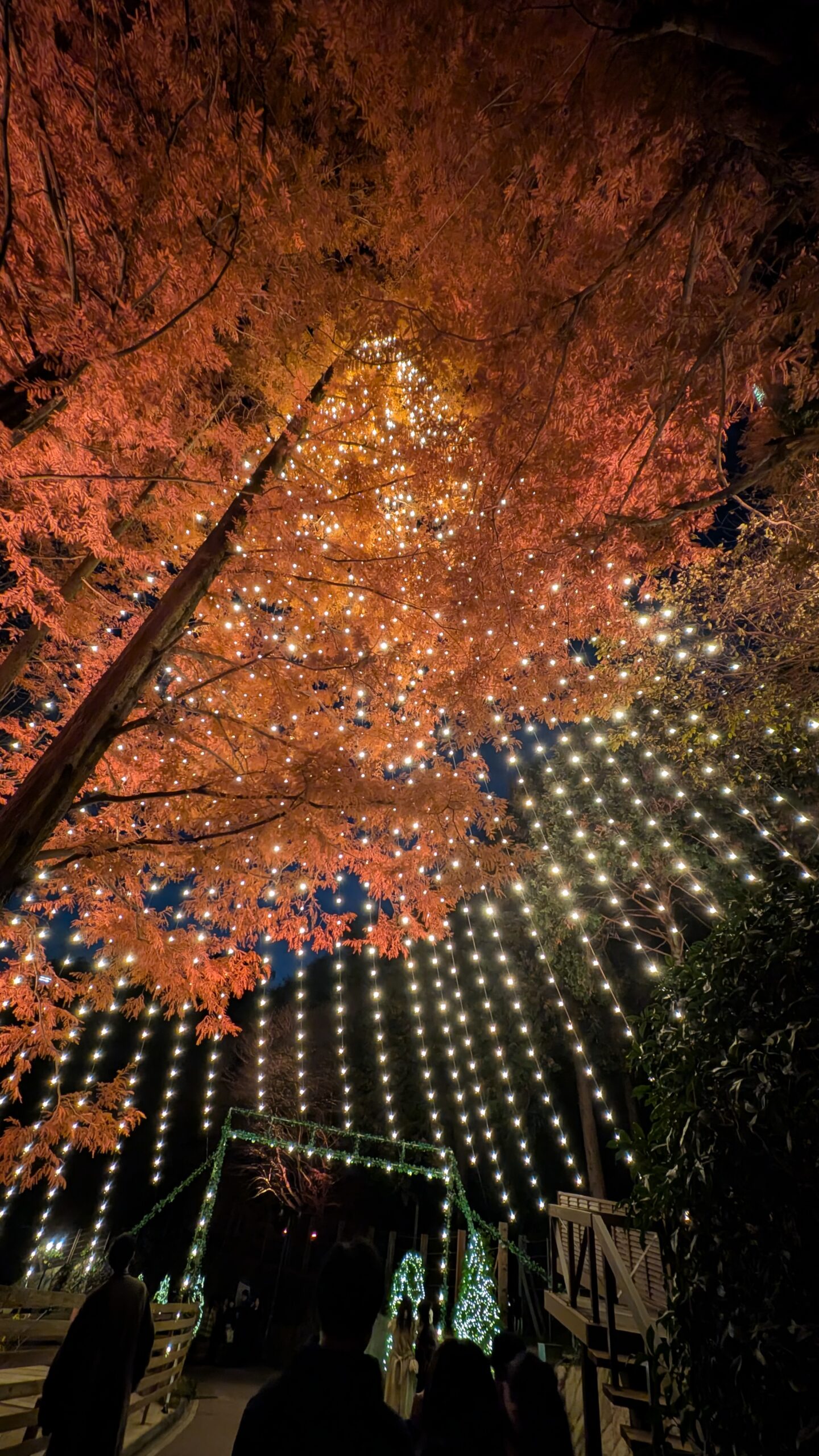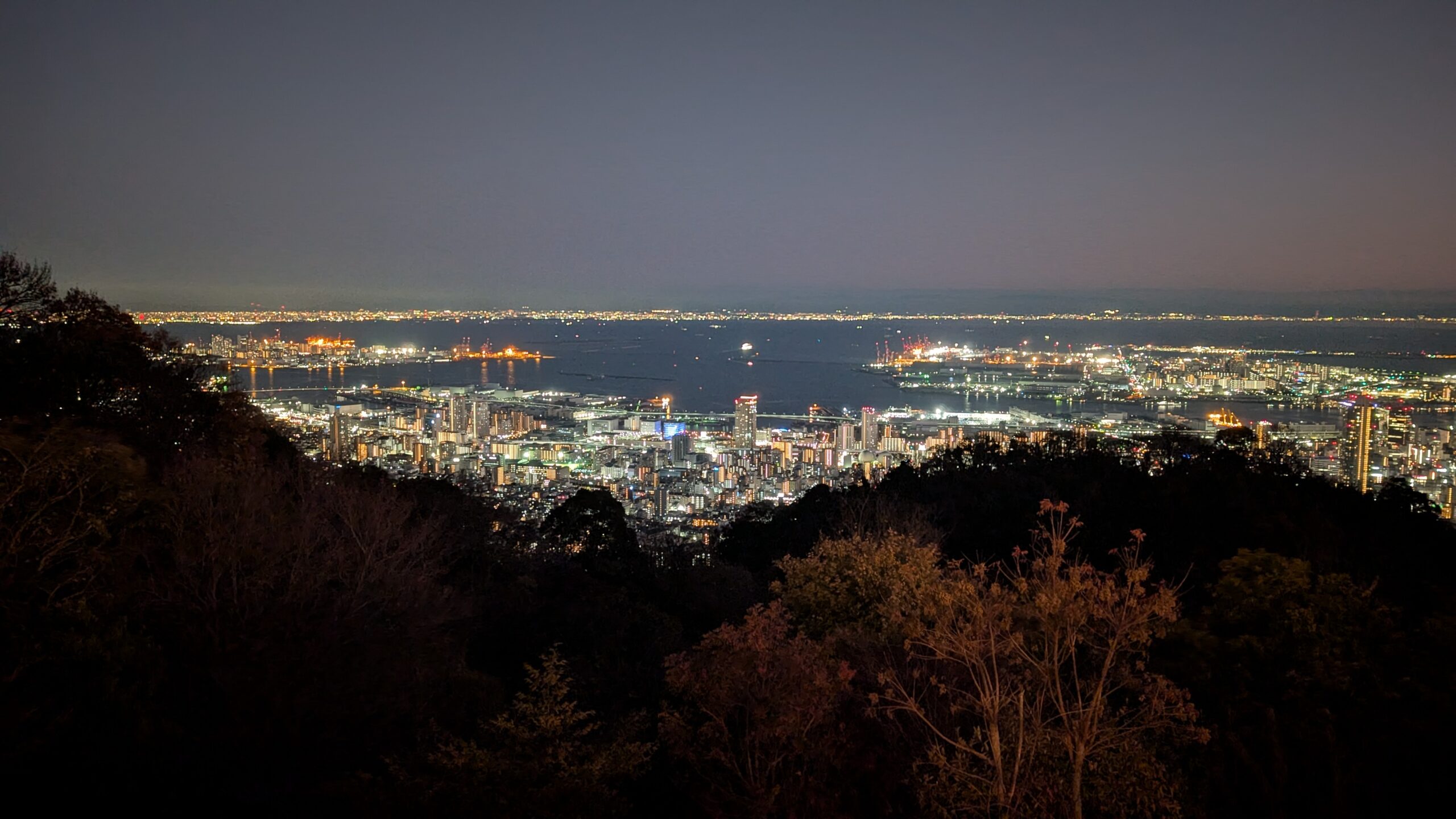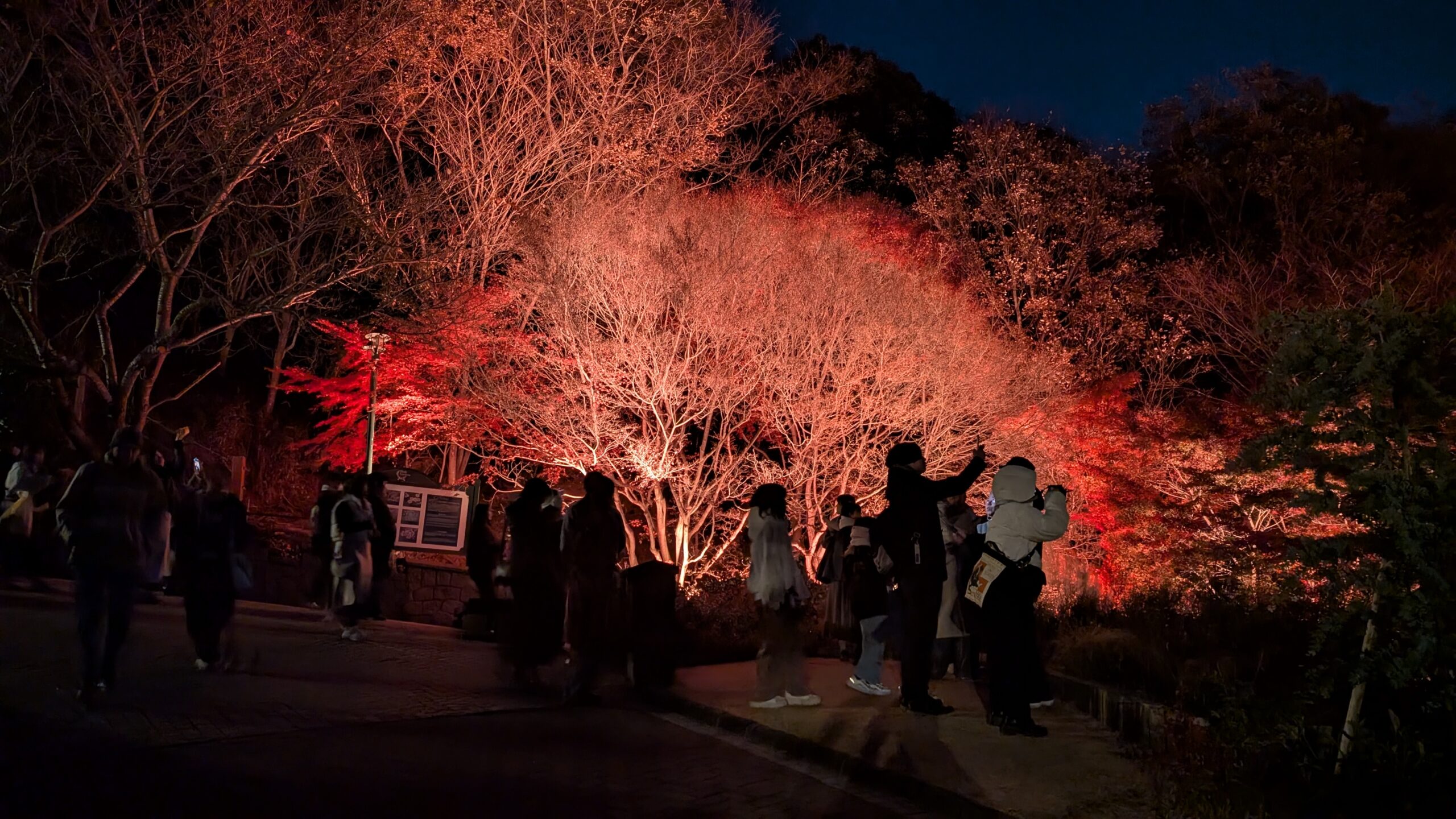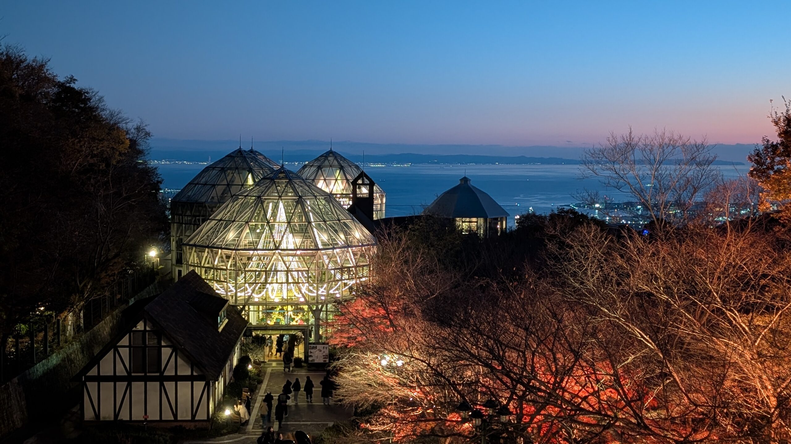 神戸の夜景、イルミネーション、ライトアップされた紅葉と