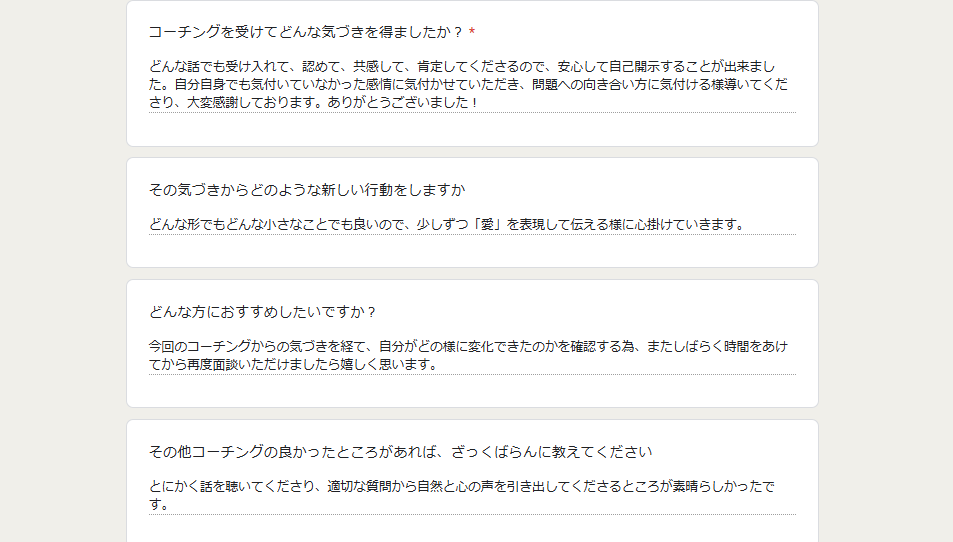 問題への向き合い方に気付ける様導いてくださり、大変感謝しております。