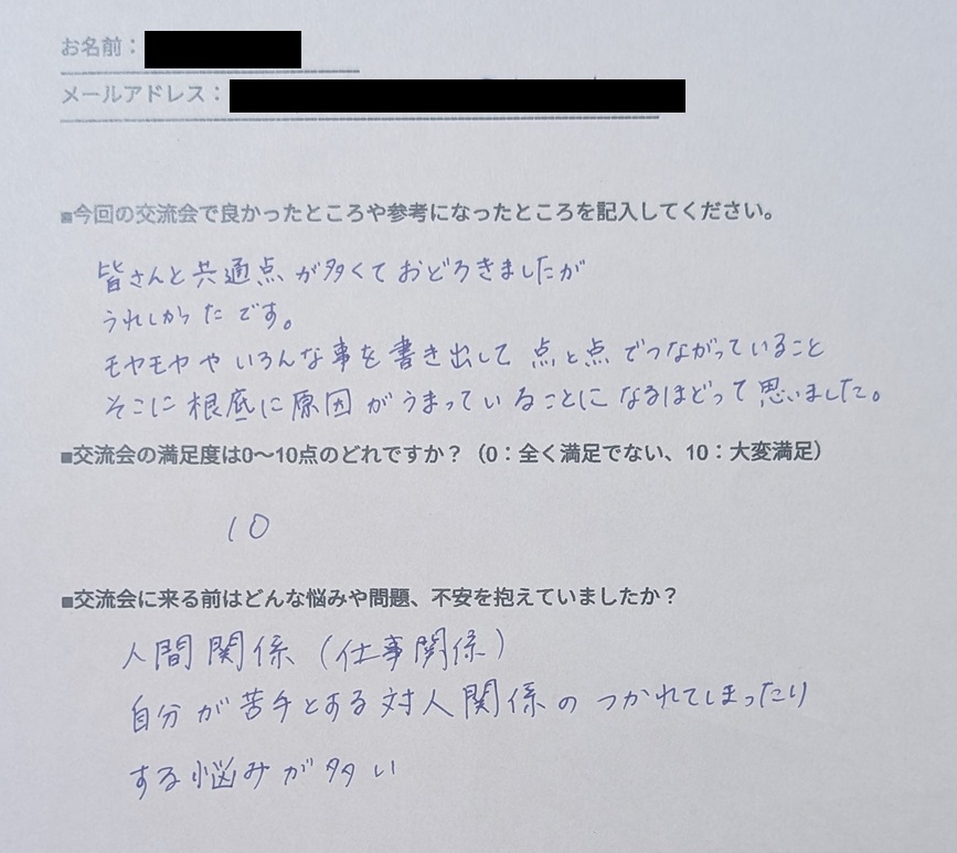 同じような人たちもいるのだと安心することができました。