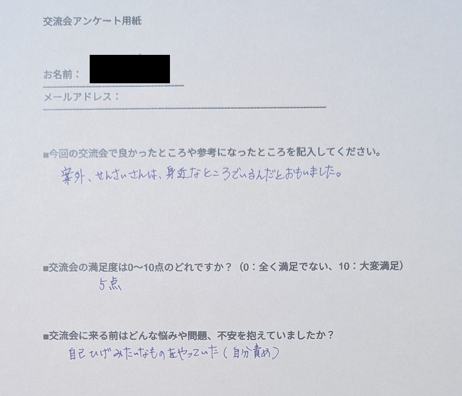 今回は5名の方が参加くださり、普段言えない繊細なエピソードで盛り上がりました。
