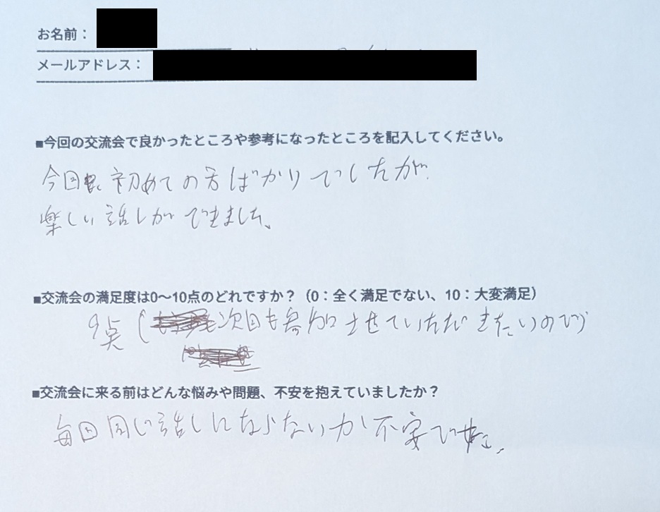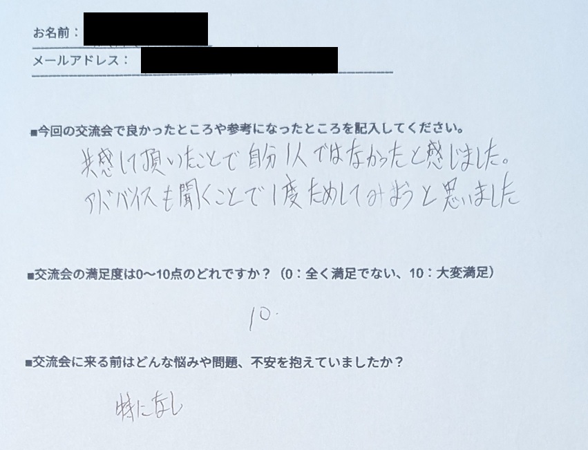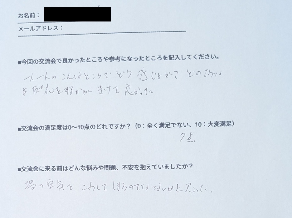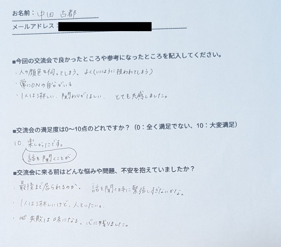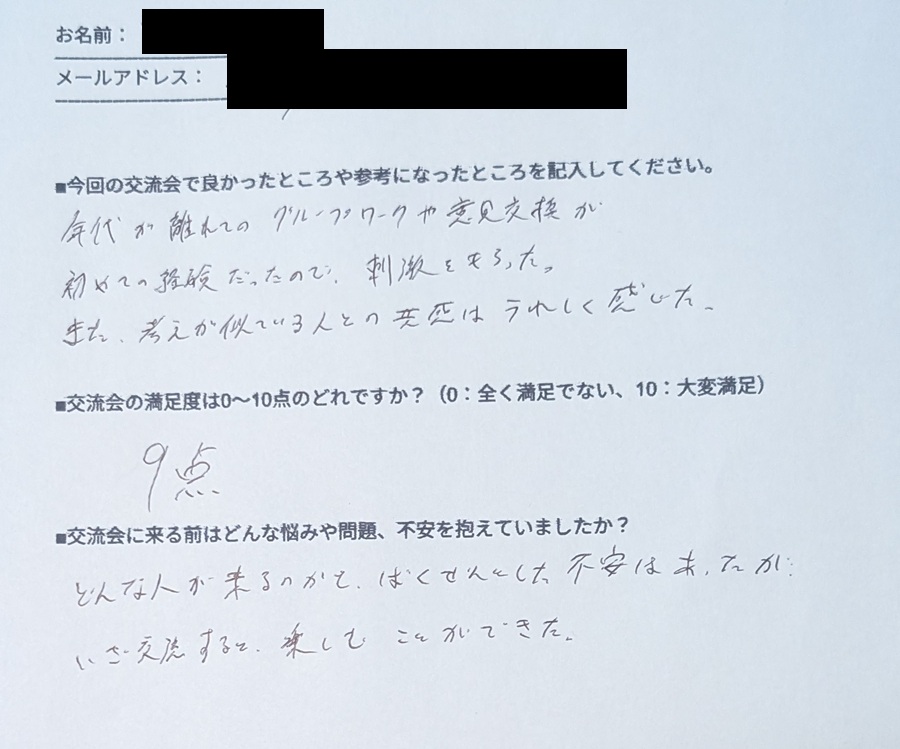 「2回目の参加でしたが、改めて、とても安心できる居場所があるという感覚でした」