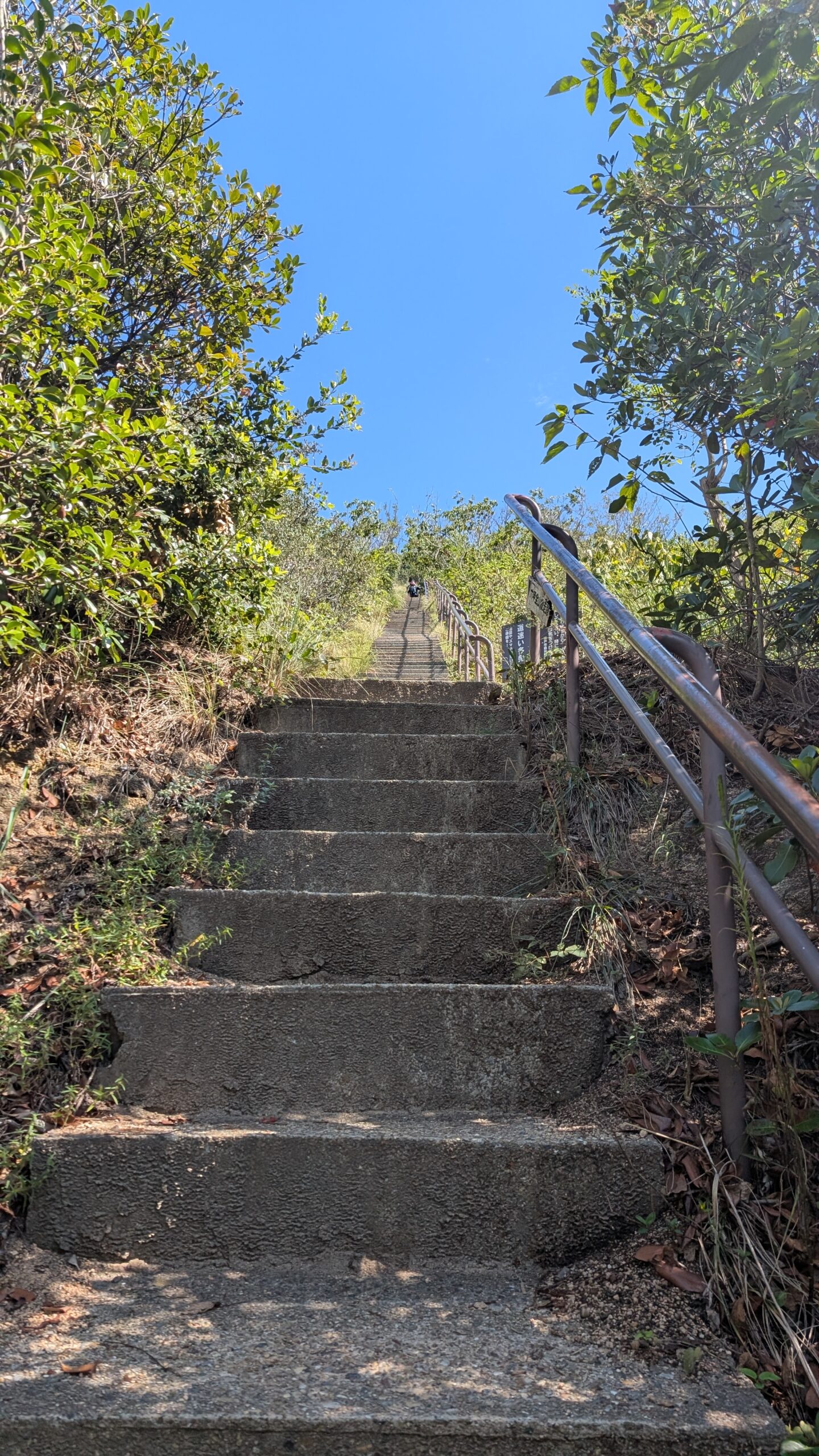 その後、おらが茶屋を抜けると、急な階段で一気に平地まで下ります。