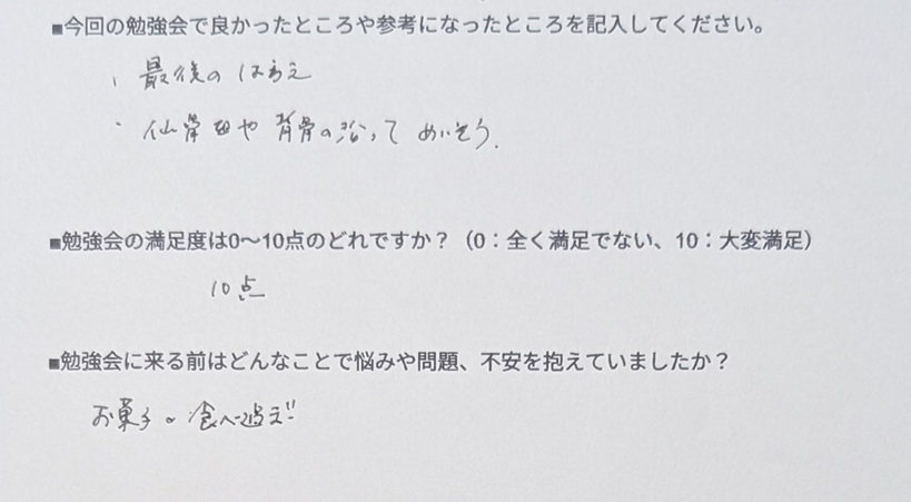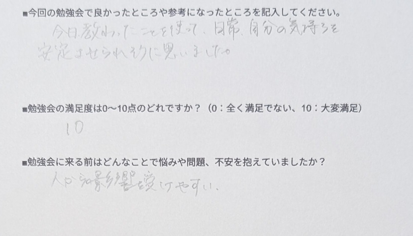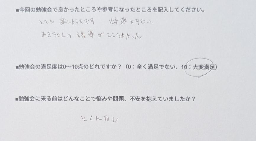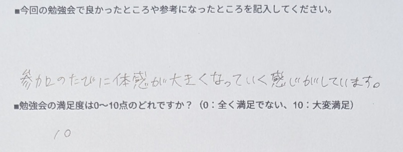 気功のワークで体感ができて、めっちゃ楽しかったと感想をいただきました。